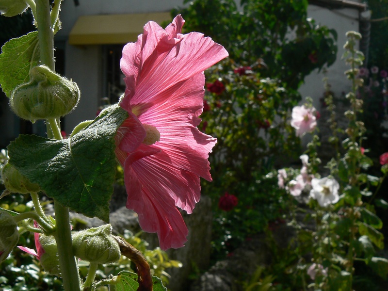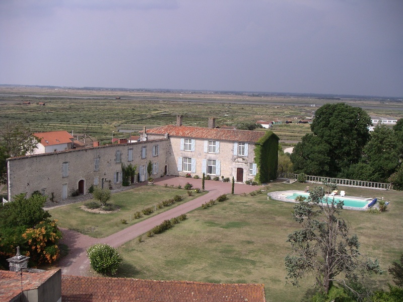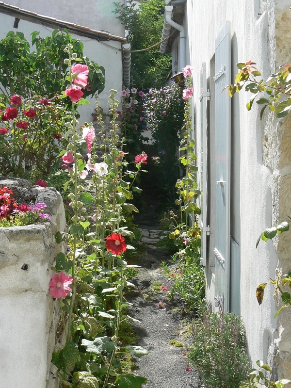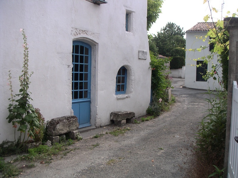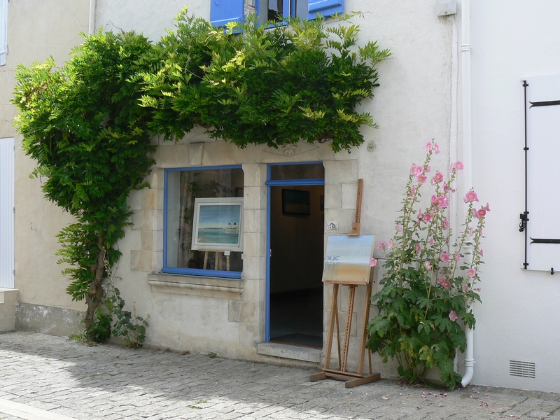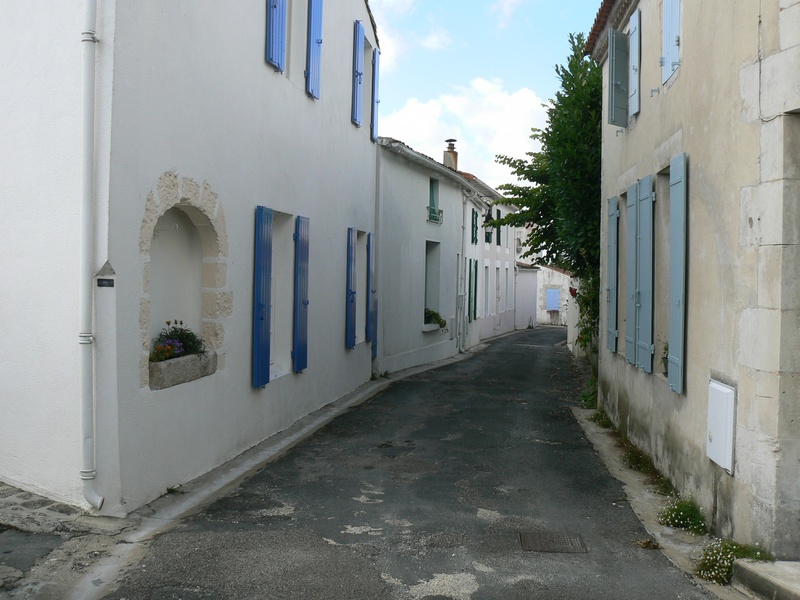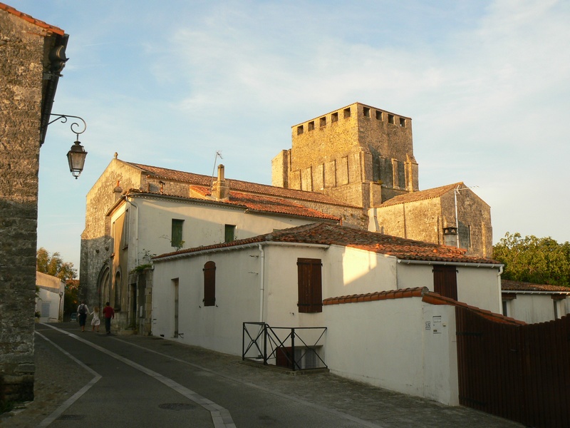 Sur la gauche, une rue piétonne s’engage, grimpant doucement jusqu’à l’église romane du clocher de laquelle on découvre le marais. Puis, la rue redescend doucement vers le port, ouvrant de part et d’autre des perspectives sur des ruelles blanches, décorées de roses trémières.