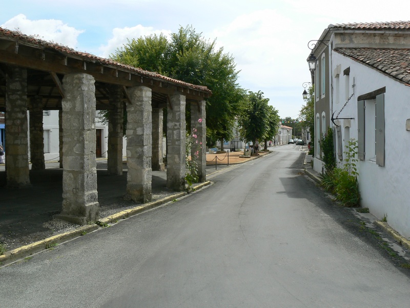 En arrivant de Chaillevette, on découvre, après le passage à niveau, une large bâtisse de pierres grises sur la gauche. A cet endroit, les rues se rétrécissent entre des façades blanches pour déboucher sur la place du marché, qui se tient sous la halle.