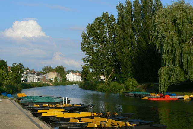 Le marais est tellement grand que la route et les chemins balisés restent le moyen le plus direct de si déplacer, même si les canaux sont omniprésents. Nous avons ainsi découvert Coulon, Arçais, Damvix, Ste Christine et Bouillé-Courdault notamment, avant de nous égarer volontairement en suivant des chemins de halage en bord de canal, jusqu’à rejoindre Marans.