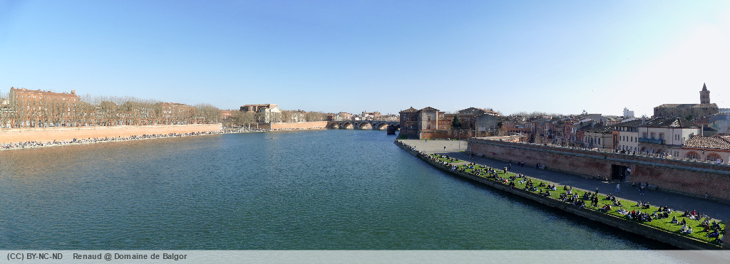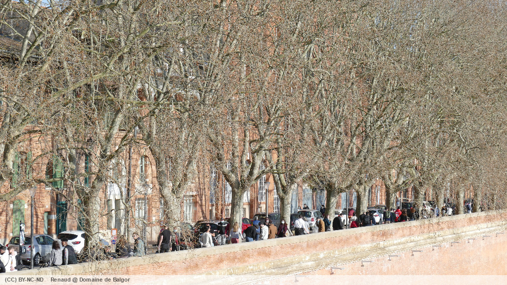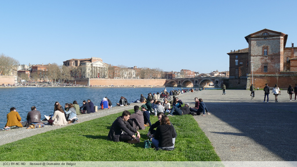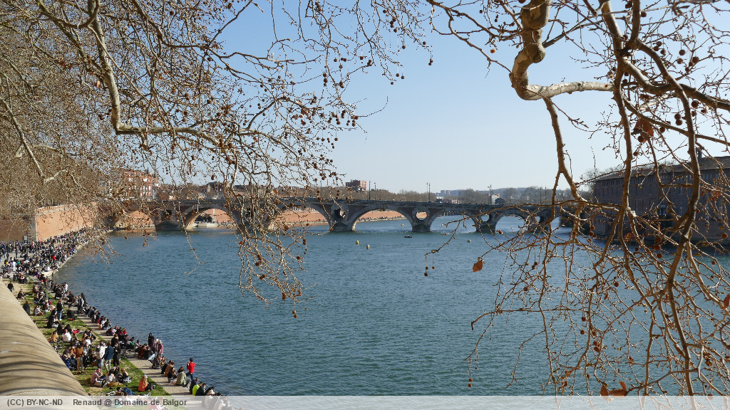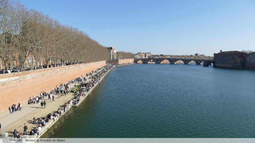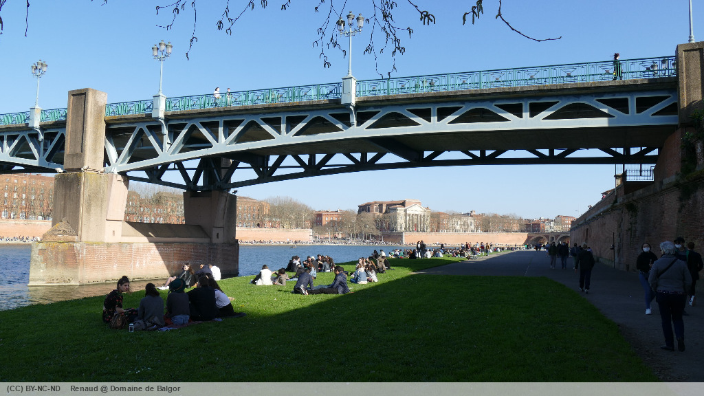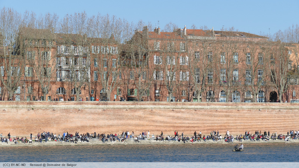 Profitant du soleil de Février, et partant des jardins des Abattoirs, nous dépassons le gué du Bazacle, son ancien moulin converti en centrale hydraulique, pour suivre les quais vers le port de la Viguerie où de nombreux groupes prenaient le soleil. Puis, remontant sur le pont St Pierre, nous profitons de la vue avant de regagner la rive droite et le quai Lucien Lombard.