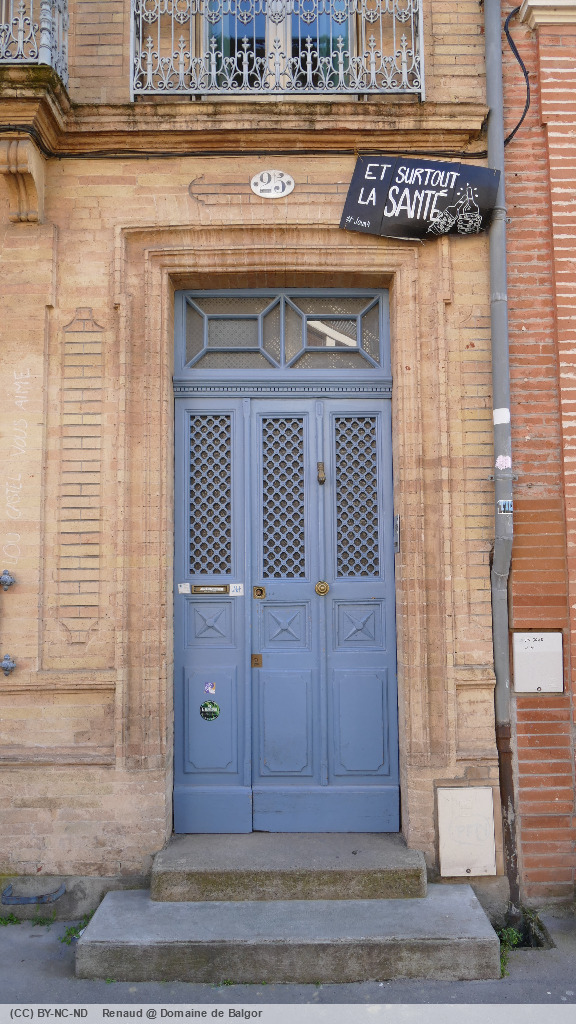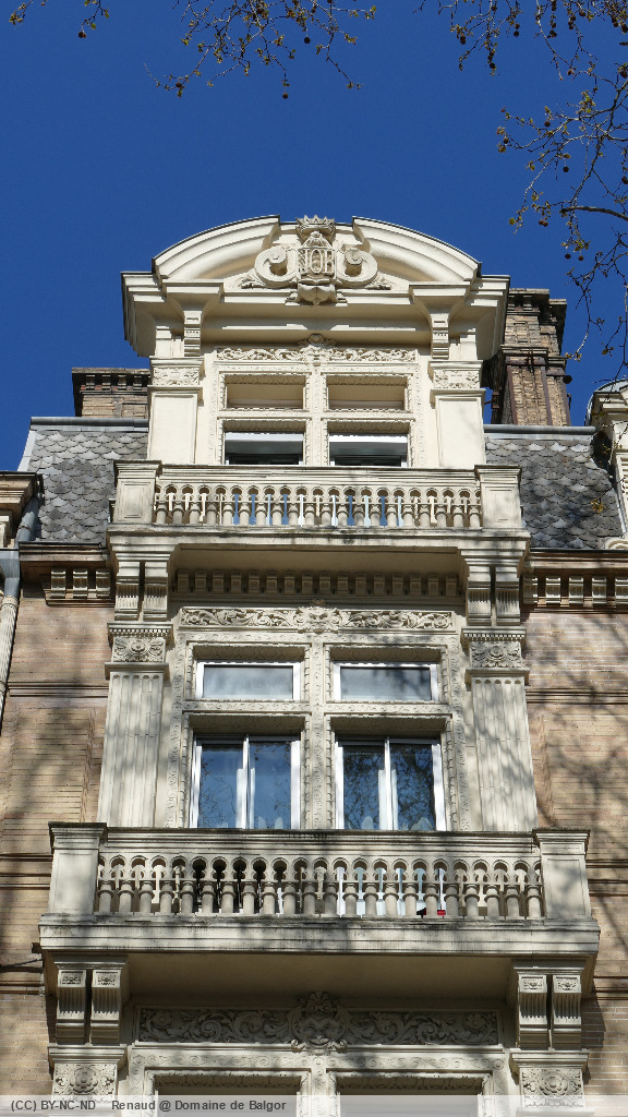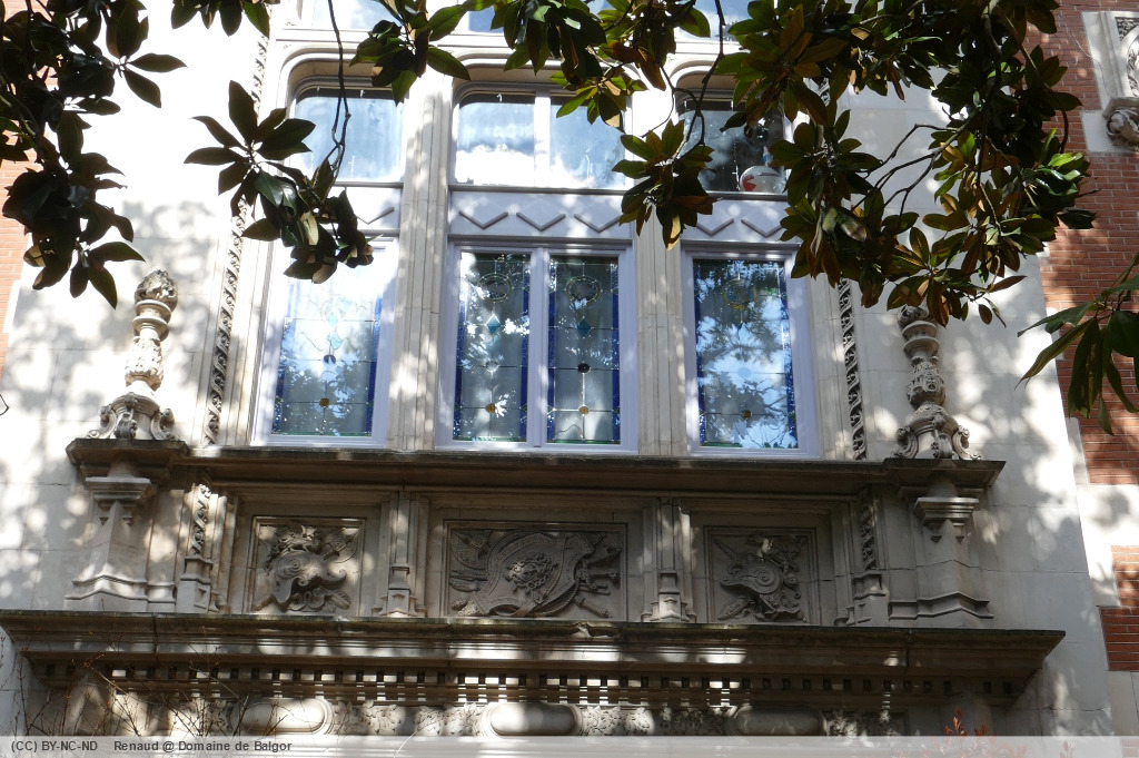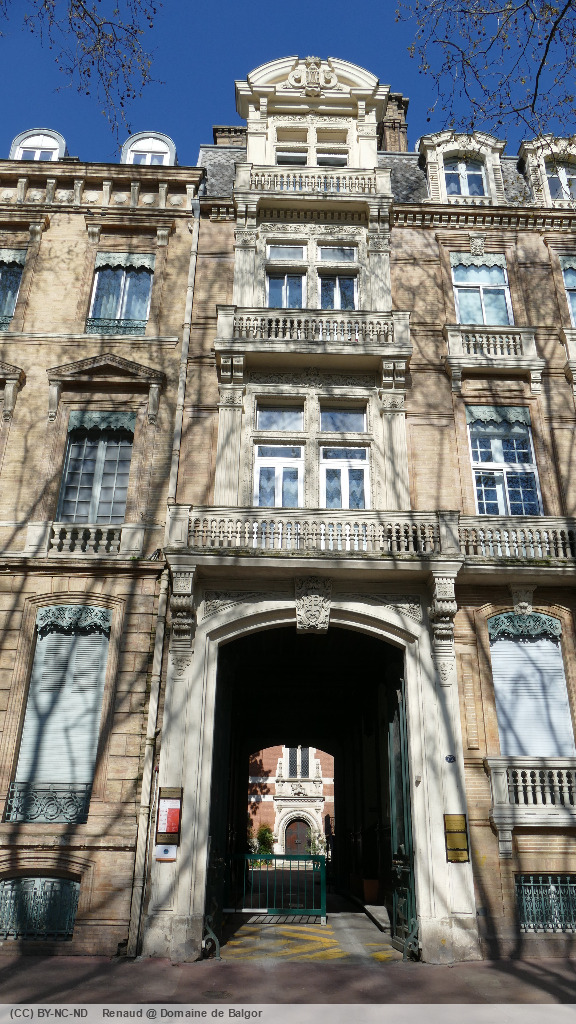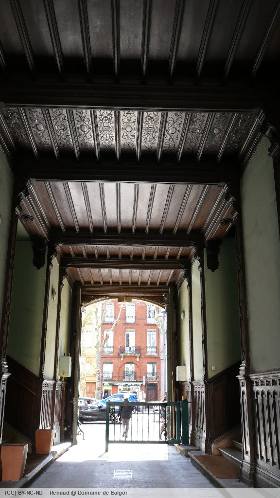 Partant de la place Jeanne d’Arc, nous remontons le boulevard de Strasbourg. Au 72, une belle surprise nous attend : la porte est ouverte et nous laisse découvrir la cour intérieure de l’immeuble construit par les entrepreneurs du papier JOB.