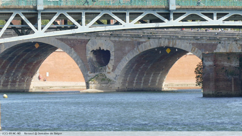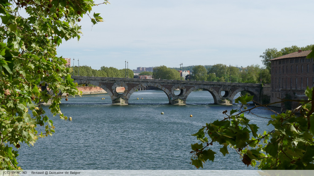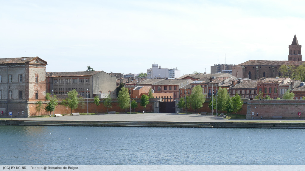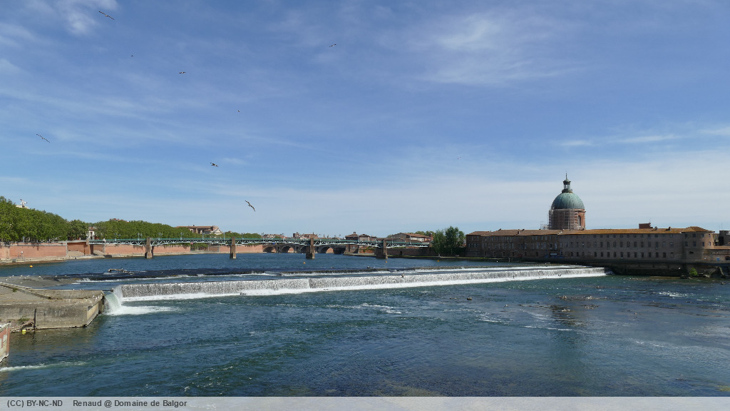 Dépassant la maison de l’ingénieur des bassins au pied d’un cèdre gigantesque, nous remontons brièvement la rue des amidonniers avant de rejoindre la coulée verte qui longe la Garonne jusqu’au gué du Bazacle. De là nous suivons la Garonne du haut des quais (ceux-ci étant actuellement fermés) jusqu’au Pont Neuf, avant de rejoindre la place Esquirol.