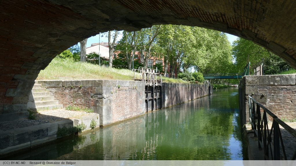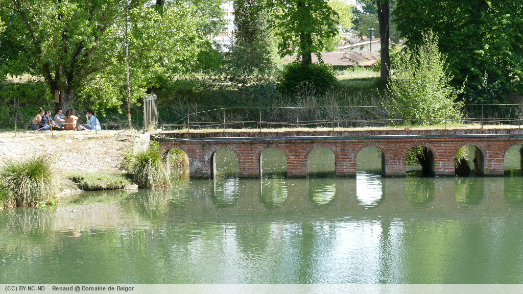 Après un coup d’oeil vers le canal latéral, et un moment à contempler la sculpture de marbre, nous remontons sur quelques mètres le canal de Brienne, avant de la quitter pour les bassins de filtrage des Amidonniers. Ces deux bassins qui filtraient l’eau du canal de Brienne pour alimenter le canal du midi, sont bordés de maisons en bois qui appartenaient autrefois aux ouvrier chargés de l’entretien des filtres. Aujourd’hui les berges sont occupées par des pécheurs et des étudiants venus chercher calme et fraicheur à deux pas de la résidence universitaire Chapou.