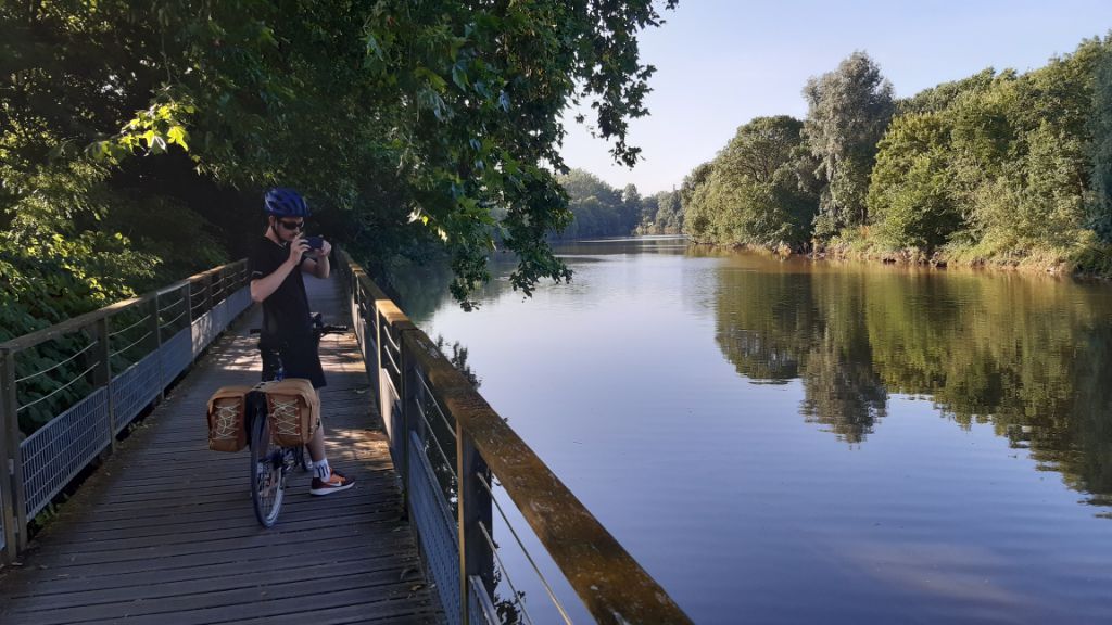 Si trouver son chemin à l'arrivée fut un peu compliqué, sortir du cœur de Nantes vers sa banlieue sud fut un plaisir : des pistes cyclables partout, plus fréquentées qu'en Allemagne, dont certaines assez bucoliques. La suite fut moins facile : le dédale des villes de banlieue nous obligea à nous arrêter souvent pour vérifier la route.