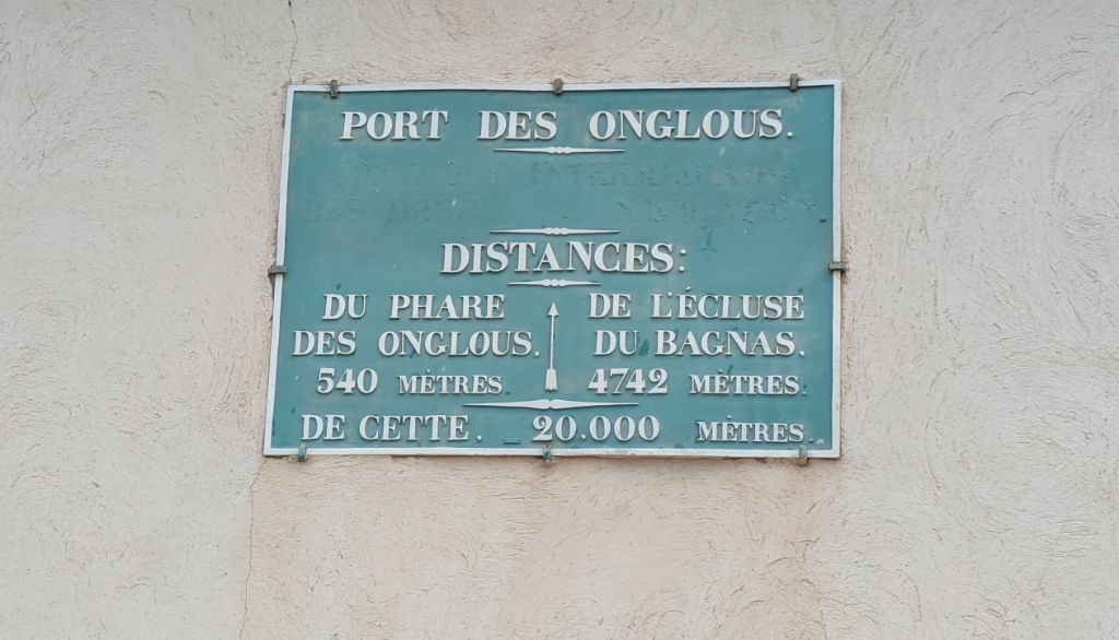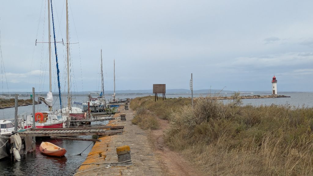 Atteignant l'étang de Thau nous arrivons aussi à l'extrémité du canal, marquée par le phare des Onglous. Au bout d'une longue jetée entre deux eaux, se trouve une base des Glénans.
