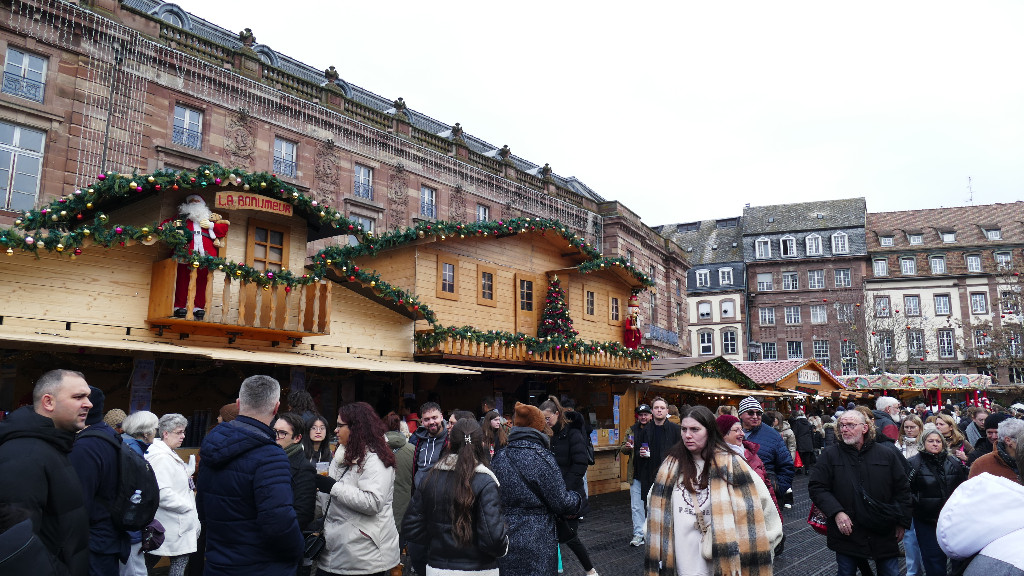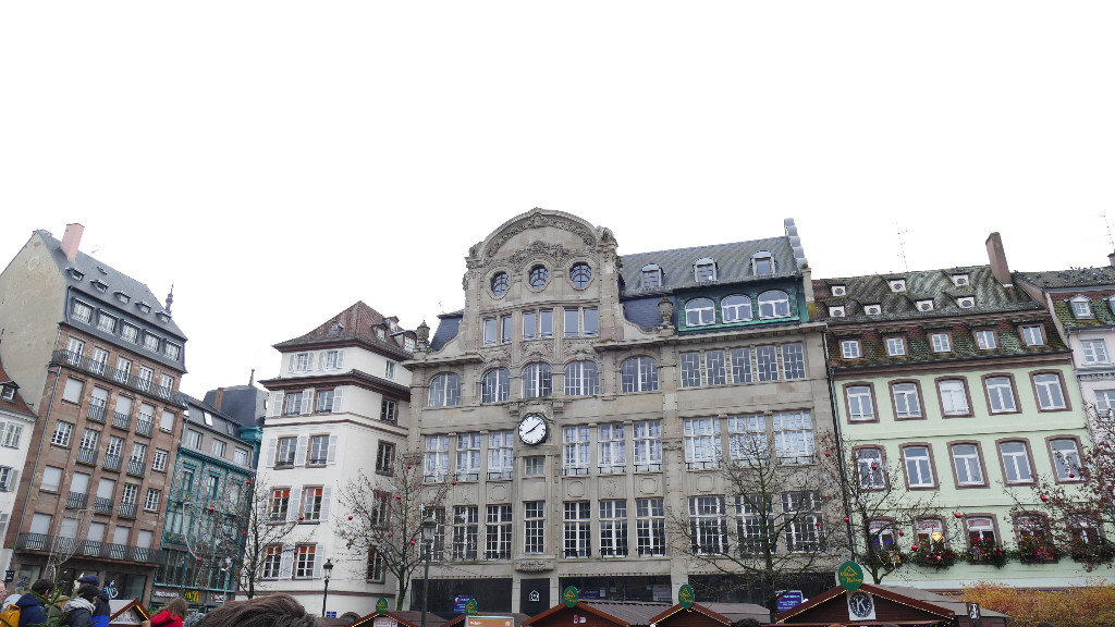 Remontant la rue du 22 novembre, on arrive à la place Kléber où se trouve un des principaux marchés de Noël de la ville. On s'y bouscule devant la rangée de chalets qui rivalisent de décorations et proposent du vin chaud, des flammekueches, mais aussi de l'artisanat et des décorations de noël.