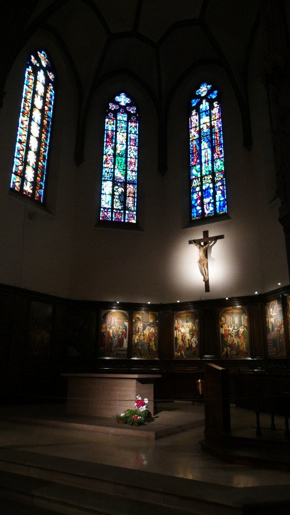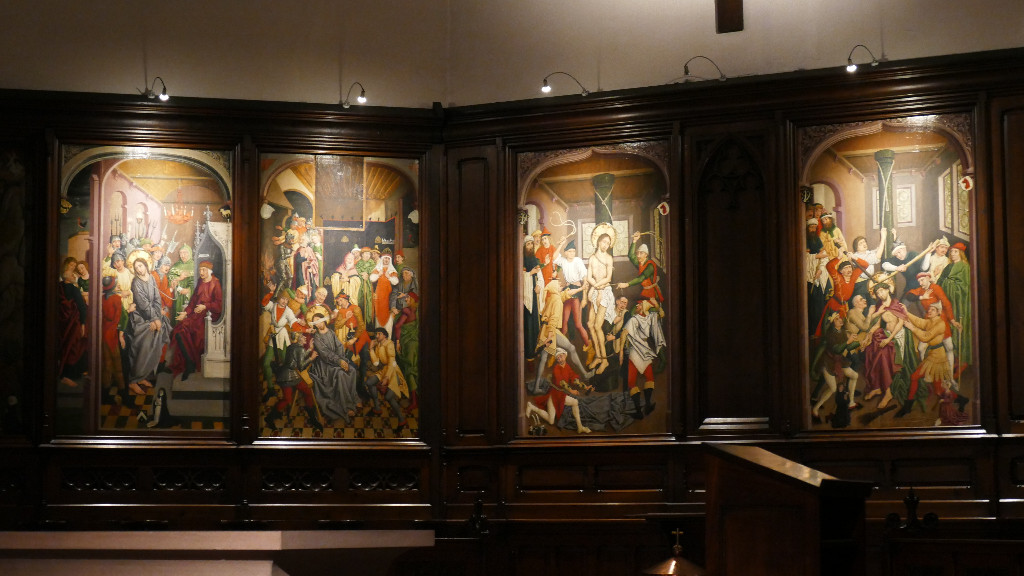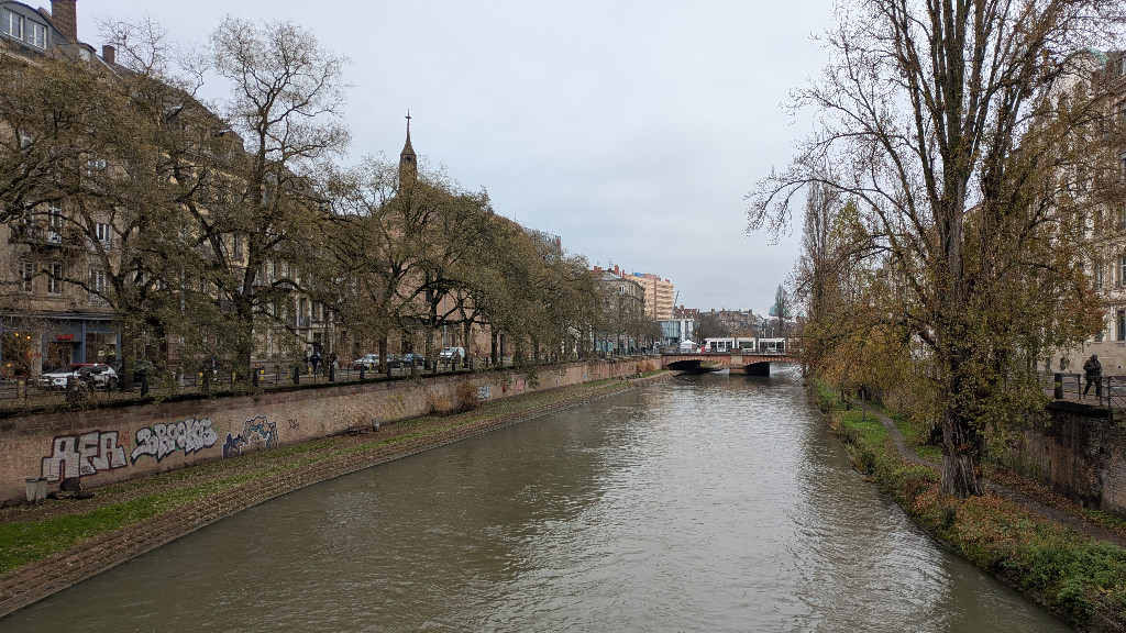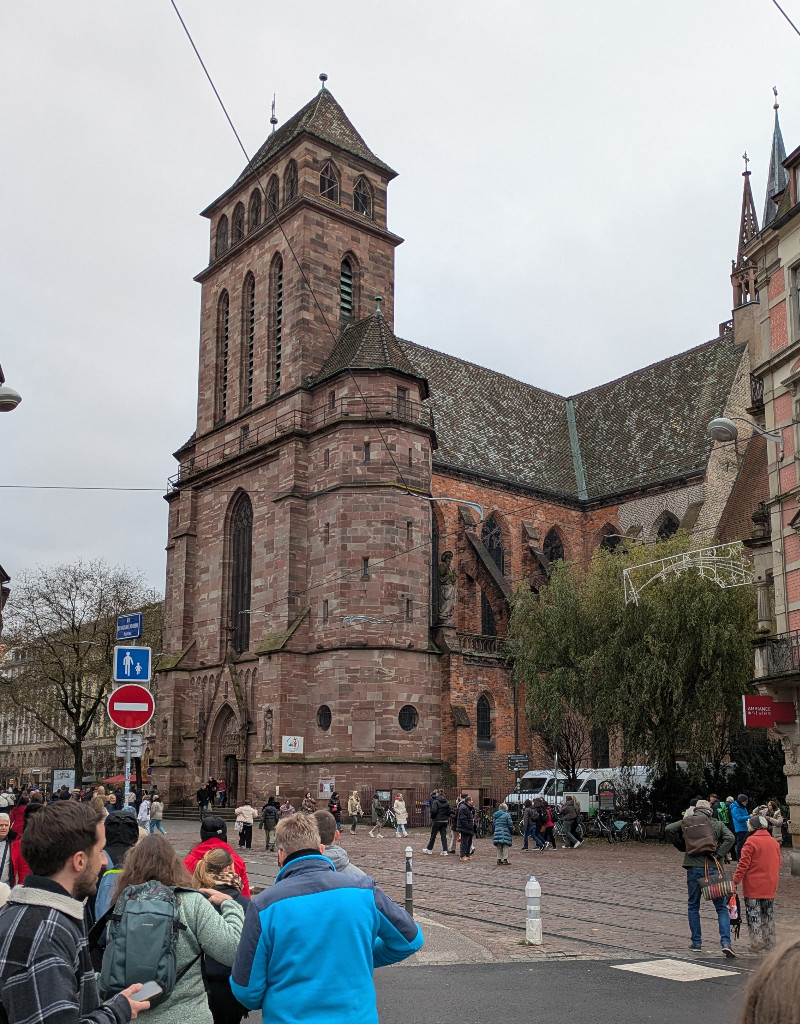 Franchissant le canal du faux rempart, nous entrons dans le centre ville par la place St-Pierre-le-Vieux. L'église en pierre rose abrite des peintures gothiques retraçant la passion du Christ.
