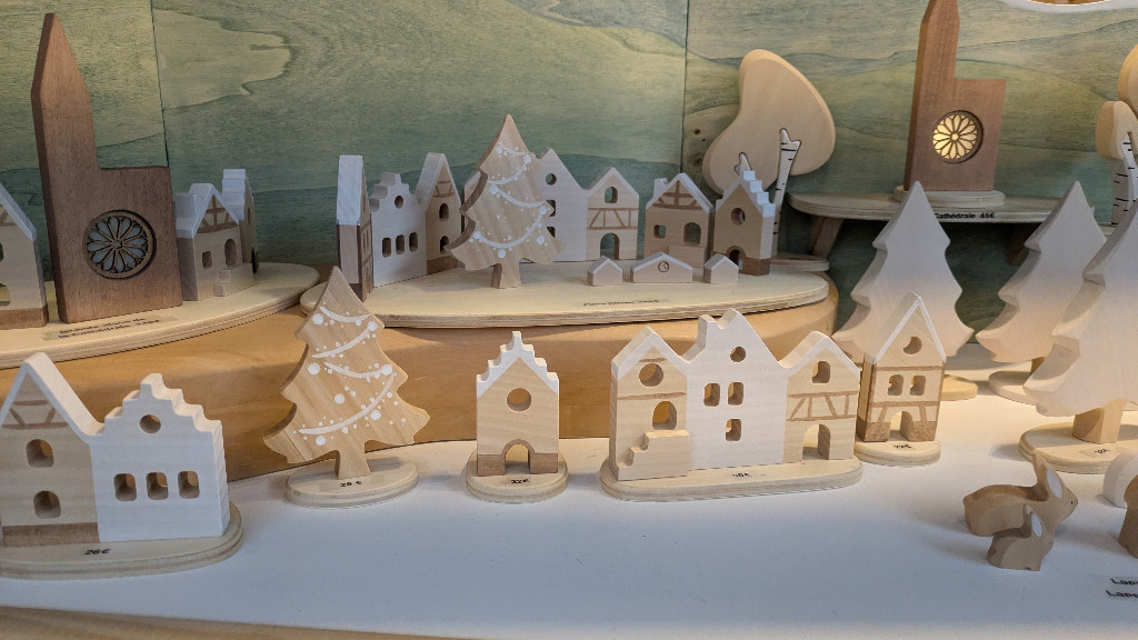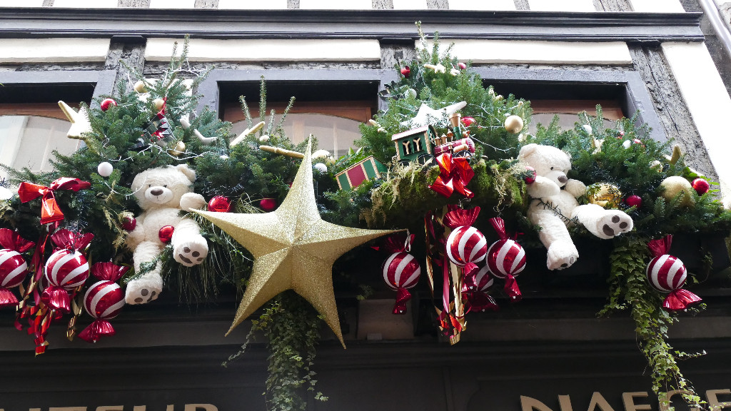 Déambulation de jour dans le cœur de ville, devenu entièrement piéton à l’occasion du marché de Noël.
