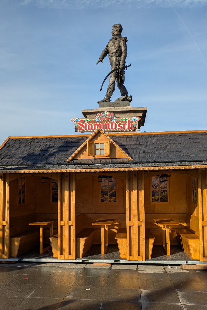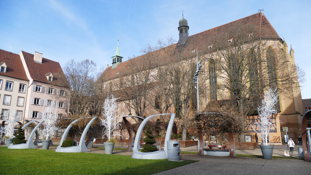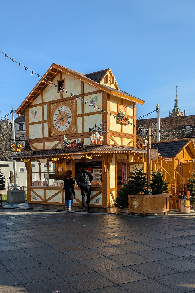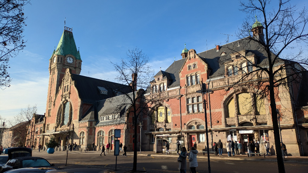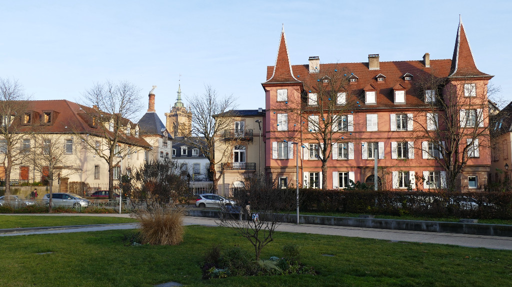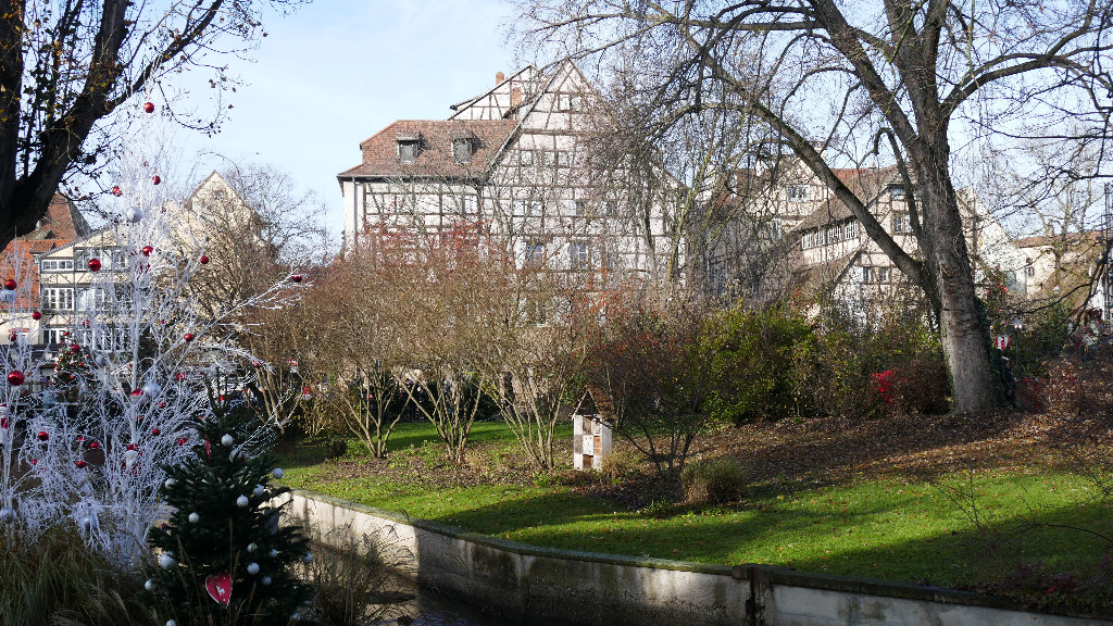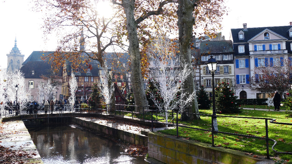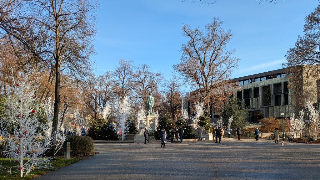 Pour accéder à la vieille ville depuis la gare, on traverse tout d'abord un grand parc qui, à la veille de noël, accueille une fête foraine.