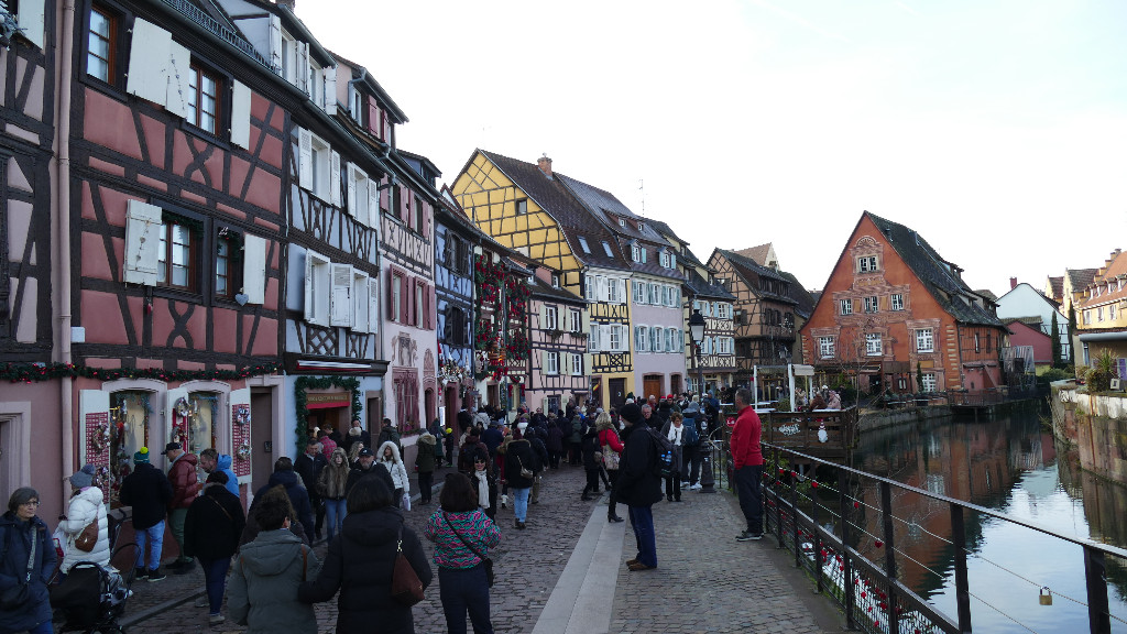 Après les grandes avenues, on pénètre dans un dédale de ruelles bordées de maisons à colombages aux façades décorées. Les voitures s'effacent au profit des piétons cheminant sur les pavés et le long des canaux.