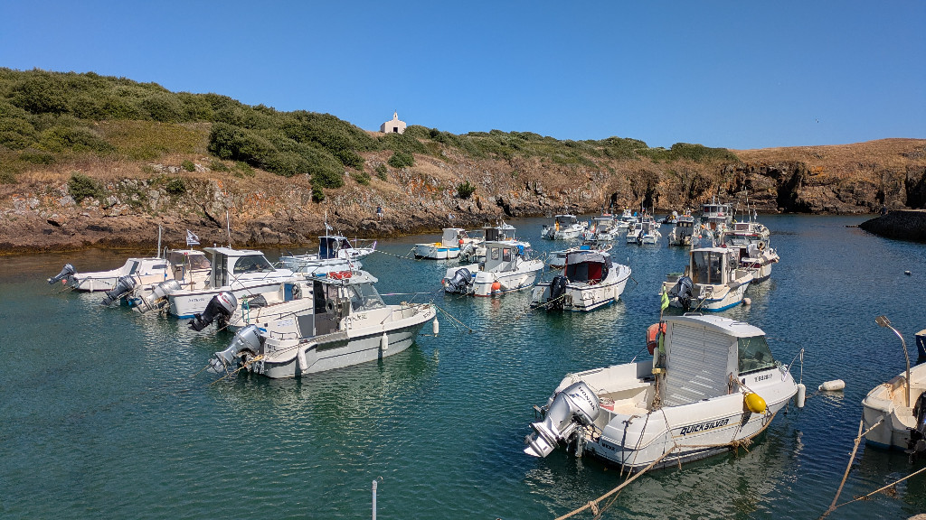 Retour pour une petite semaine sur une île que nous avions parcouru trop rapidement quelques années auparavant. Il faut prendre le temps de cheminer sur le sentier de la côte ouest, des Corbeaux au But, pour profiter de ce paysage sauvage de lande rase et ventée aux falaises battues par les flots, avant de retourner dans l’atmosphère calme des ruelles de Port Joinville, qui se faufilent entre les maisons blanches aux volets bleus.